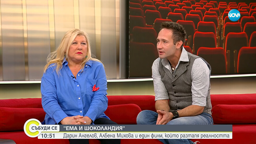 Дарин Ангелов и Албена Михова са в студиото на „Събуди се“, с разказ за най-новата комедия „Ема и Шоколандия“, която любителите на българското кино могат да гледат по кината в страната. В семейната лента редом до актьорите прави своя дебют и дъщерята на Дарин Ангелов – Дария. Във филма участват и 15 деца от актьорската школа, в която преподава Албена Михова.