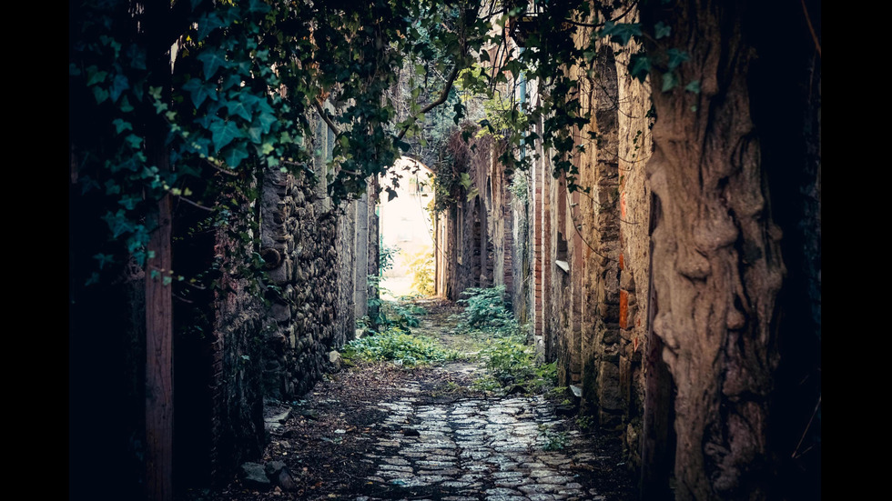 Изглед от безлюдните сгради в града-призрак Апиче, Южна Италия.