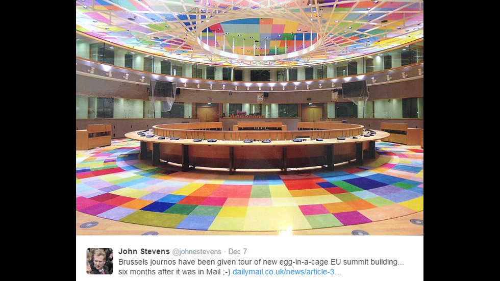 ГАЛЕРИИ "Космическото яйце" - новото място за заседания на Съвета на ЕС Снимки: ЕПА/БГНЕС, Twitter 2 / 14 "Космическото яйце" - новото място за заседания на Съвета на ЕС 08 декември 2016 18:03 Снимки: ЕПА/БГНЕС, Twitter Tweet Още галерии България се прощава с великия Михаил Белчев Велики четвъртък е: Днес се боядисват великденски яйца и се месят козунаци Илияна Йотова награди медийната платформа „24 часа“ Осми лайв на "Като две капки вода" - Сезона-Слънце България се сбогува с легендарния Борислав Михайлов Морето изхвърли крило на боен дрон на плаж в Бургаско Най-популярните България се прощава с великия Михаил Белчев Илияна Йотова награди медийната платформа „24 часа“ Осми лайв на "Като две капки вода" - Сезона-Слънце Велики четвъртък е: Днес се боядисват великденски яйца и се месят козунаци