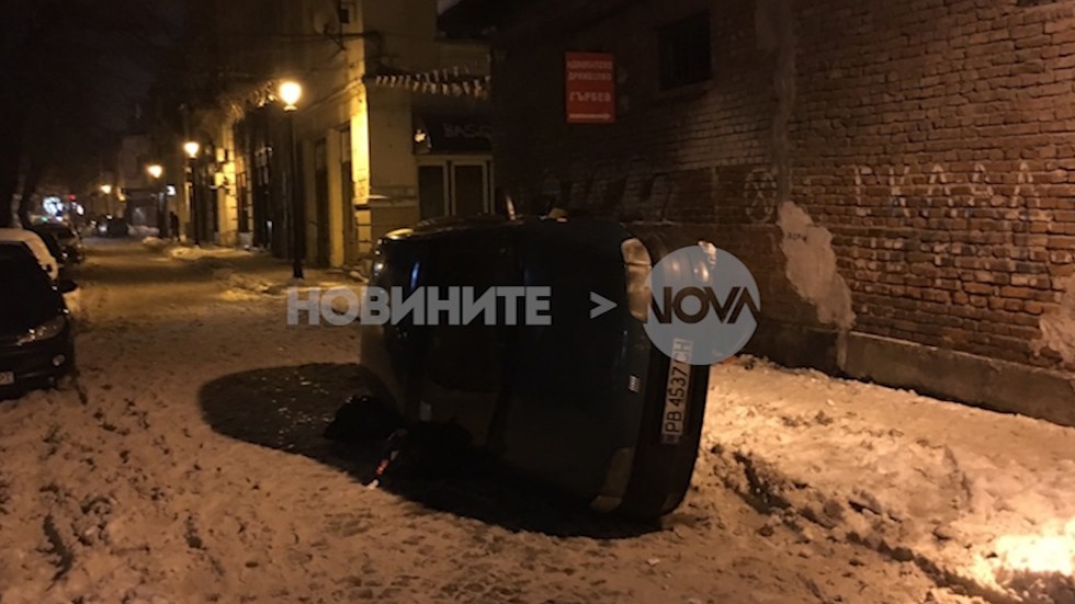Обърната кола на метри от полицията в Пловдив