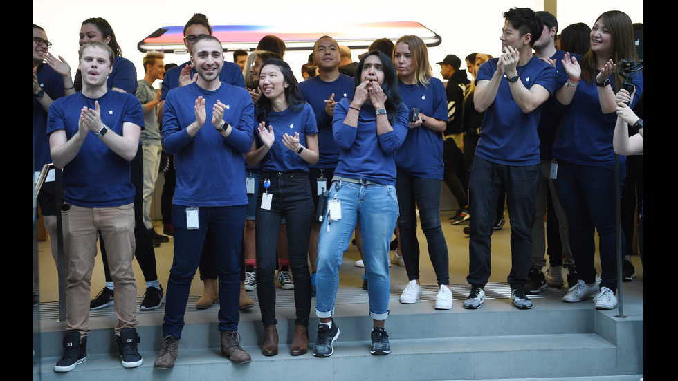 На много места се извиха дълги опашки от желаещи да се сдобият с един от най-новите модели на "Apple". Снимки: ЕПА/БГНЕС