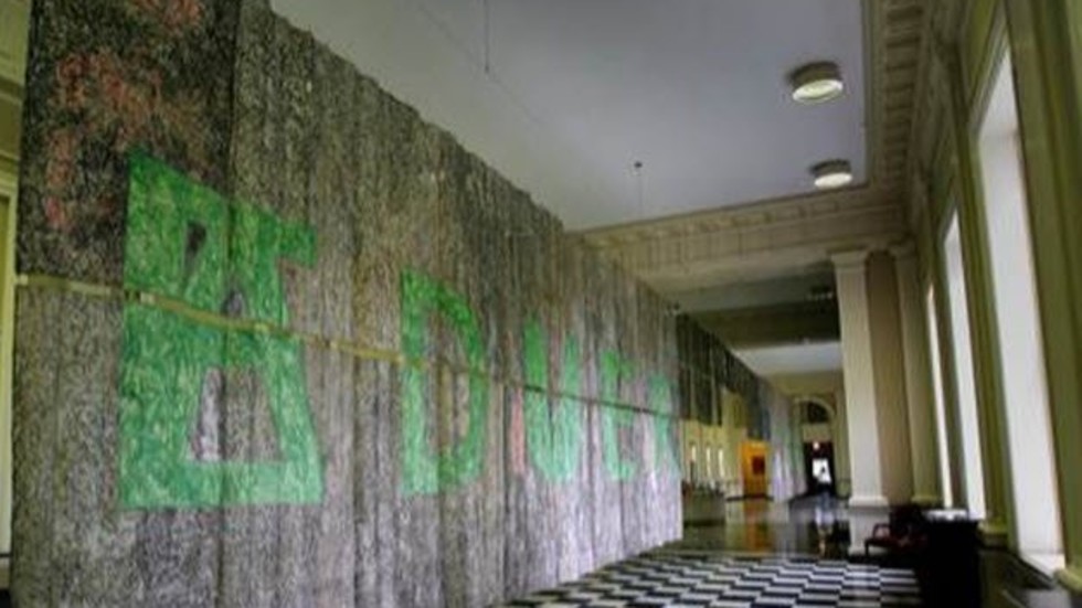 Човешката коса е била използвана по цял свят в най-различни форми на изкуство. Преди време огромен транспарант от коса беше опънат върху библиотеката на колежа Дартмаут. „Шедьовърът” е бил 24 на 4 метра, като за създаването му са употребени 190 килограма коса, събрани от 42 хиляди пострижки. Снимка: NBC News