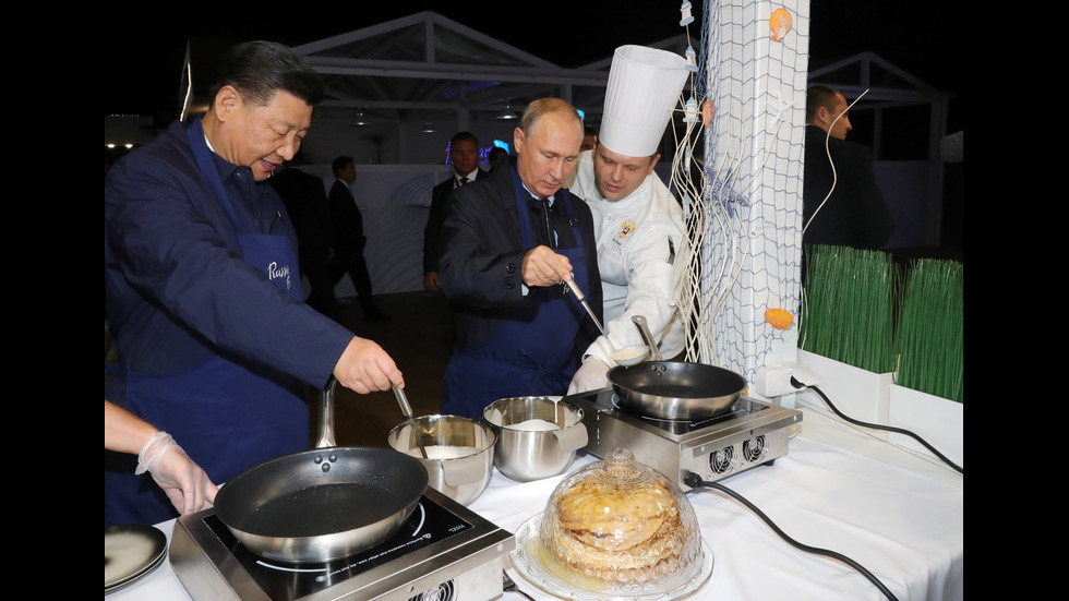 ГАЛЕРИИ Путин и Си Дзинпин приготвиха палачинки и пийнаха водка Снимки: БГНЕС 2 / 4 Путин и Си Дзинпин приготвиха палачинки и пийнаха водка 11 септември 2018 23:02 Снимки: БГНЕС Tweet Още галерии Илияна Йотова награди медийната платформа „24 часа“ Осми лайв на "Като две капки вода" - Сезона-Слънце България се сбогува с легендарния Борислав Михайлов Морето изхвърли крило на боен дрон на плаж в Бургаско Автобус помете патрулки на паркинга пред районното в Горна Оряховица Пътнически влак дерайлира в Старозагорско Най-популярните Илияна Йотова награди медийната платформа „24 часа“ Осми лайв на "Като две капки вода" - Сезона-Слънце
