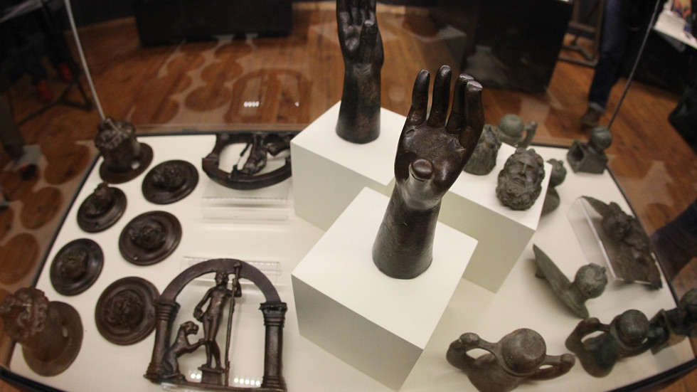 ГАЛЕРИИ Показват в изложба над 300 спасени от нелегален трафик артефакти В Националния археологически институт с музей при БАН откриха изложбата „Спасени съкровища на България“. Снимка: Олег Попов, NOVA 1 / 15 Показват в изложба над 300 спасени от нелегален трафик артефакти 06 ноември 2018 12:52 В Националния археологически институт с музей при БАН откриха изложбата „Спасени съкровища на България“. Снимка: Олег Попов, NOVA Tweet Още галерии Астронавтите от лунната мисия на НАСА "Артемис 2" се завърнаха обратно на Земята България се прощава с великия Михаил Белчев Велики четвъртък е: Днес се боядисват великденски яйца и се месят козунаци Илияна Йотова награди медийната платформа „24 часа“ Осми лайв на "Като две капки вода" - Сезона-Слънце България се сбогува с легендарния Борислав Михайлов Най-популярните Астронавтите от лунната мисия на НАСА "Артемис 2" се завърнаха обратно на Земята