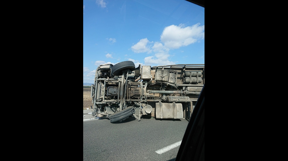 Камион с прасета се обърна на АМ „Тракия"
