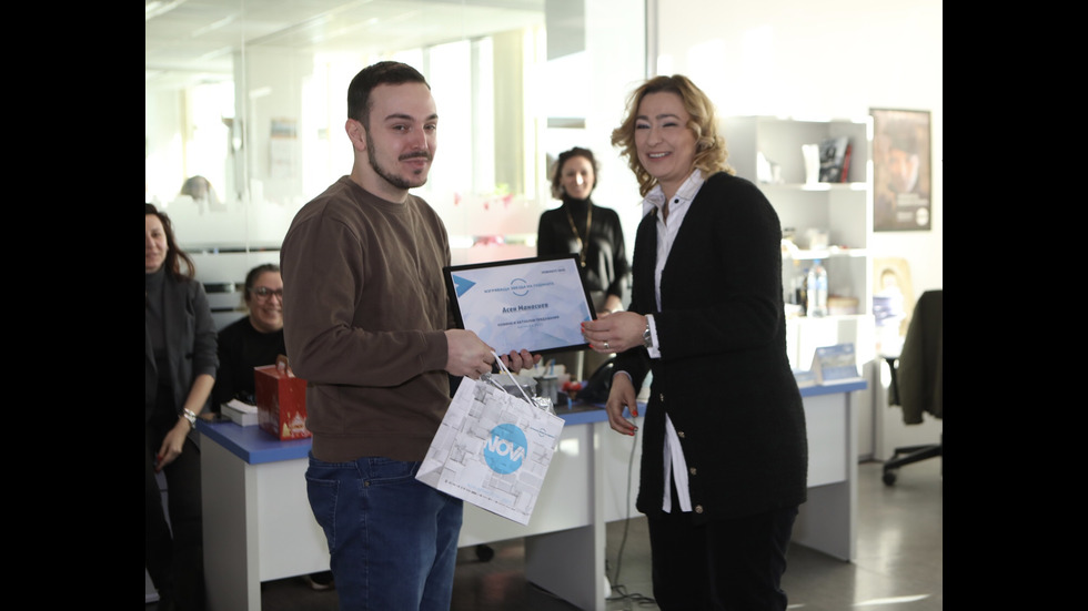 ГАЛЕРИИ NOVA отличи най-добрите в екипа си Снимки: Георги Димитров, NOVA 23 / 30 NOVA отличи най-добрите в екипа си 20 декември 2022 15:38 Снимки: Георги Димитров, NOVA Tweet Още галерии Лицата на Априлското въстание оживяват в изложба на млади учени от УниБИТ Астронавтите от лунната мисия на НАСА "Артемис 2" се завърнаха обратно на Земята България се прощава с великия Михаил Белчев Велики четвъртък е: Днес се боядисват великденски яйца и се месят козунаци Илияна Йотова награди медийната платформа „24 часа“ Осми лайв на "Като две капки вода" - Сезона-Слънце Най-популярните Лицата на Априлското въстание оживяват в изложба на млади учени от УниБИТ