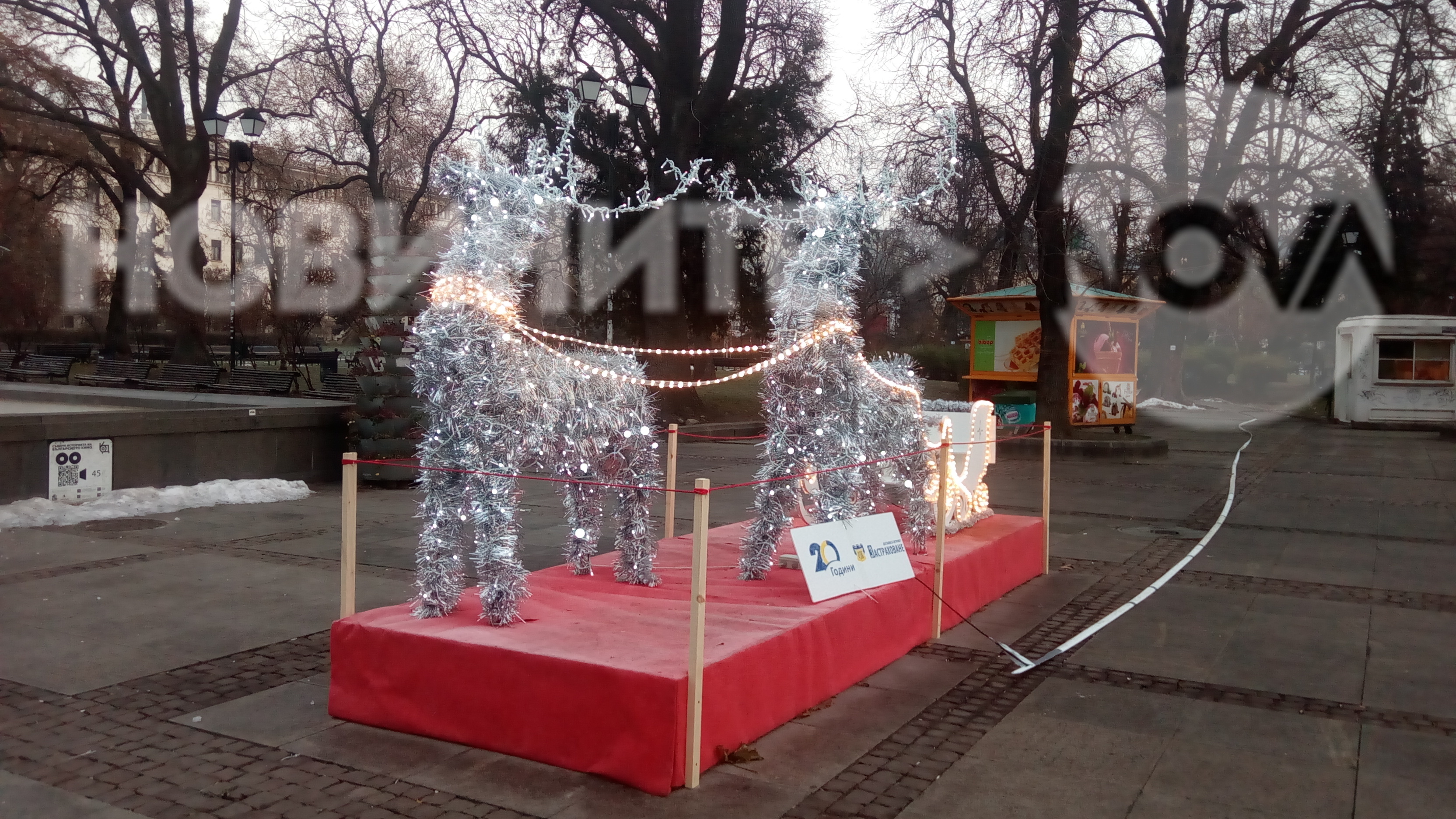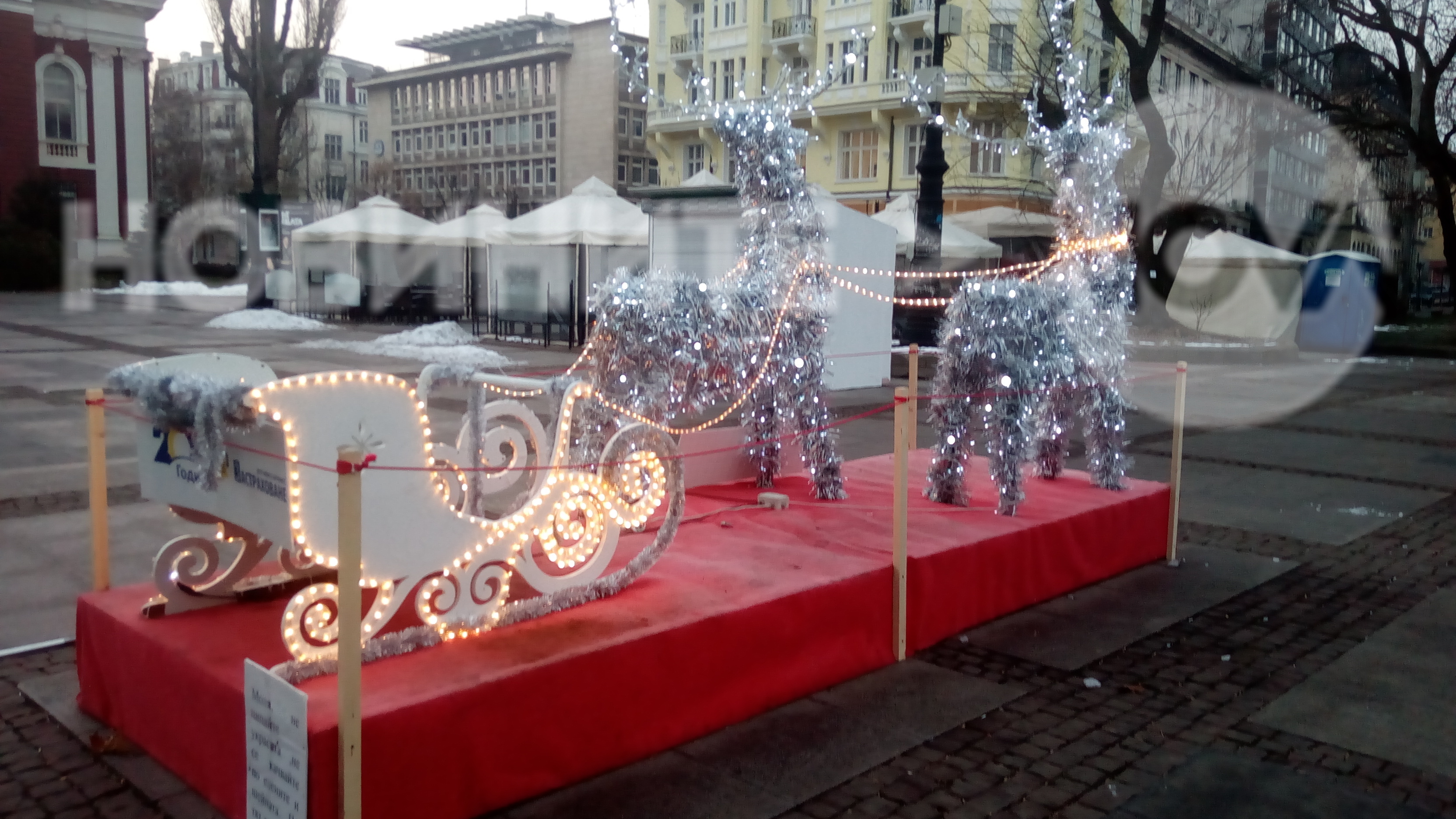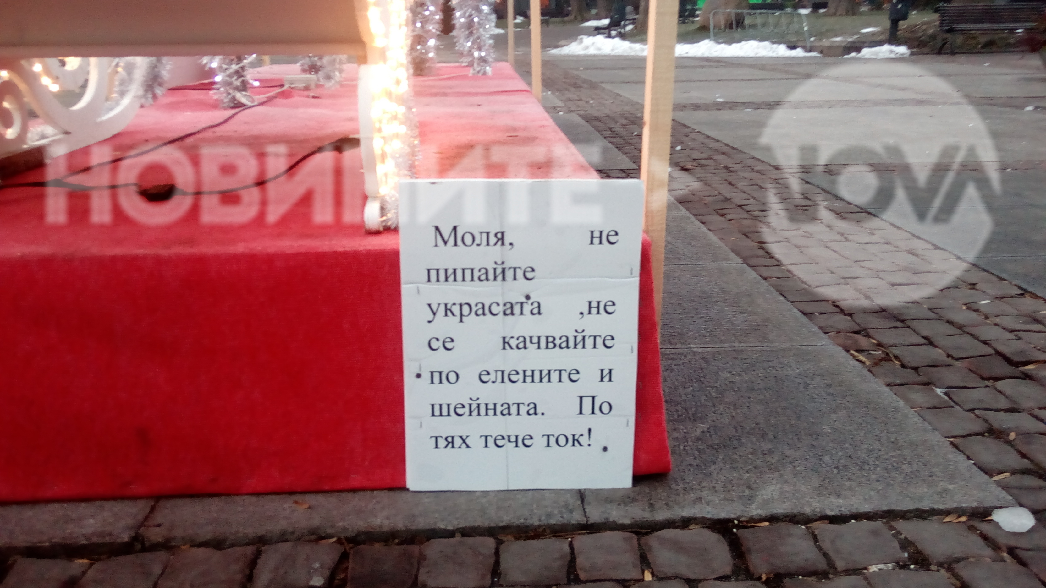 Вървя си аз и гледам, украса пред народния театър, еленчета впрегнати с шейна светят празнично. Дотук добре, снимах ги, вижте ги добре и питам аз в коя държава съм? На Коледа по украсата тече ТОК! Чудесно всички дечица могат да четат надписа сврян под дупето на елените и то само и единствено там!!!