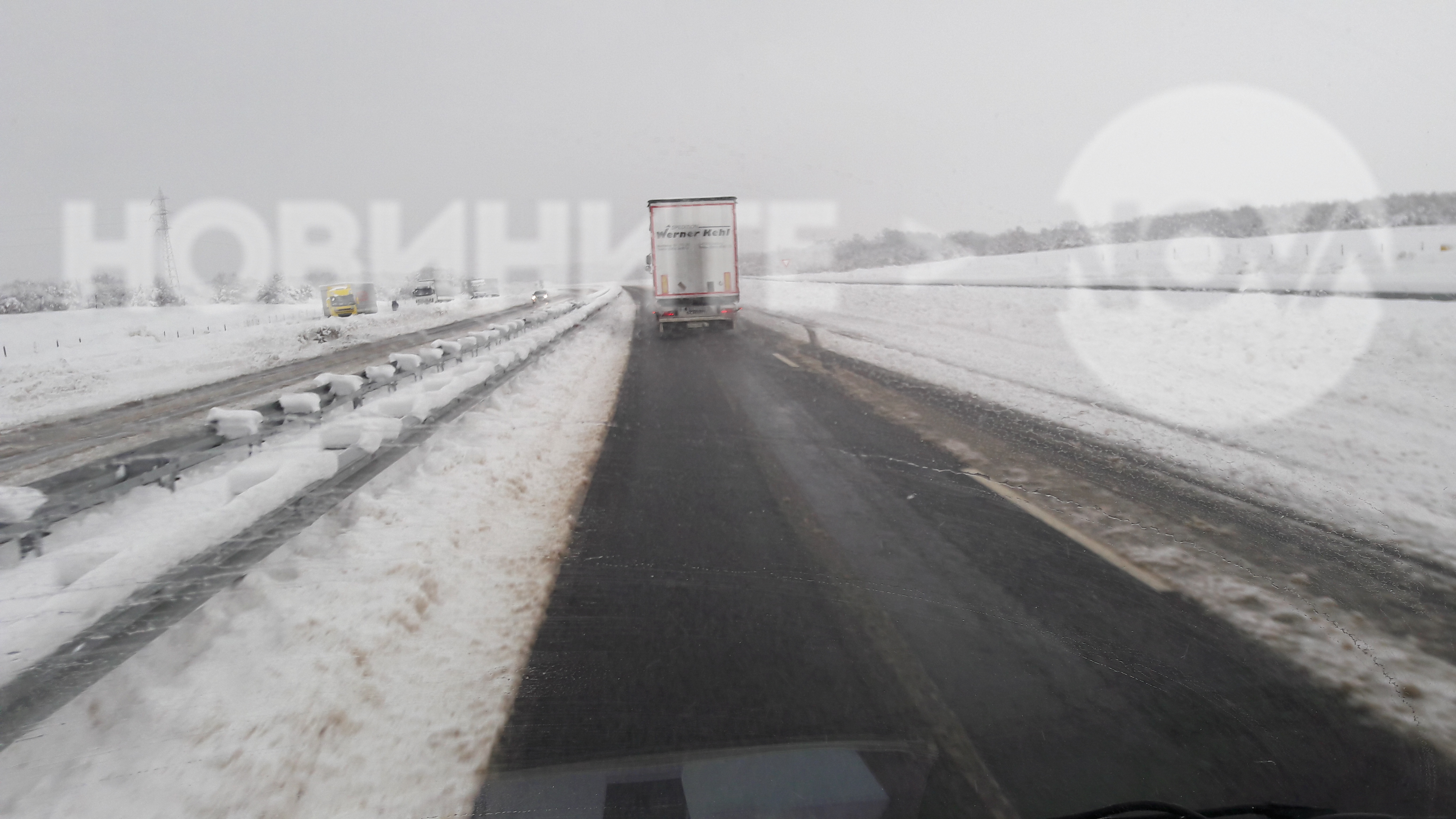 Отново ли ни изненада снегът? Магистрала "Марица" в района на Хасково - Харманли. Само едната лента ставаше за движение...