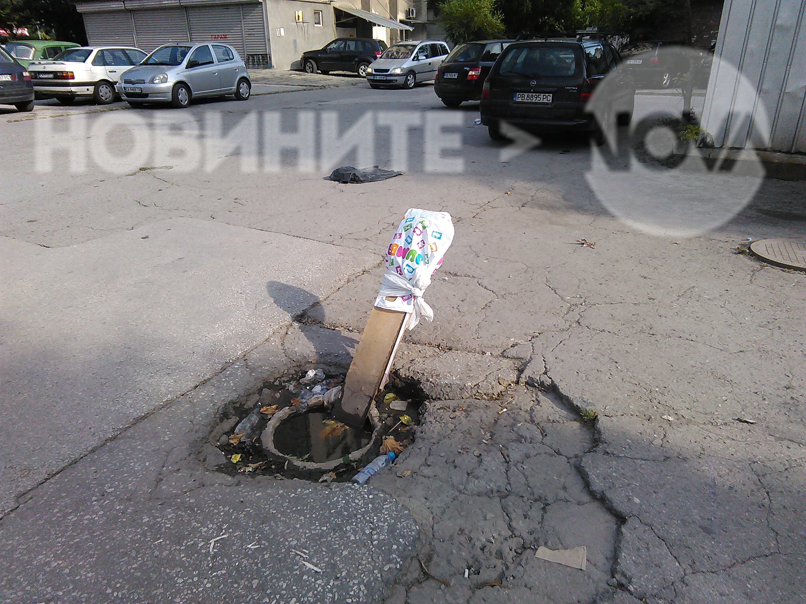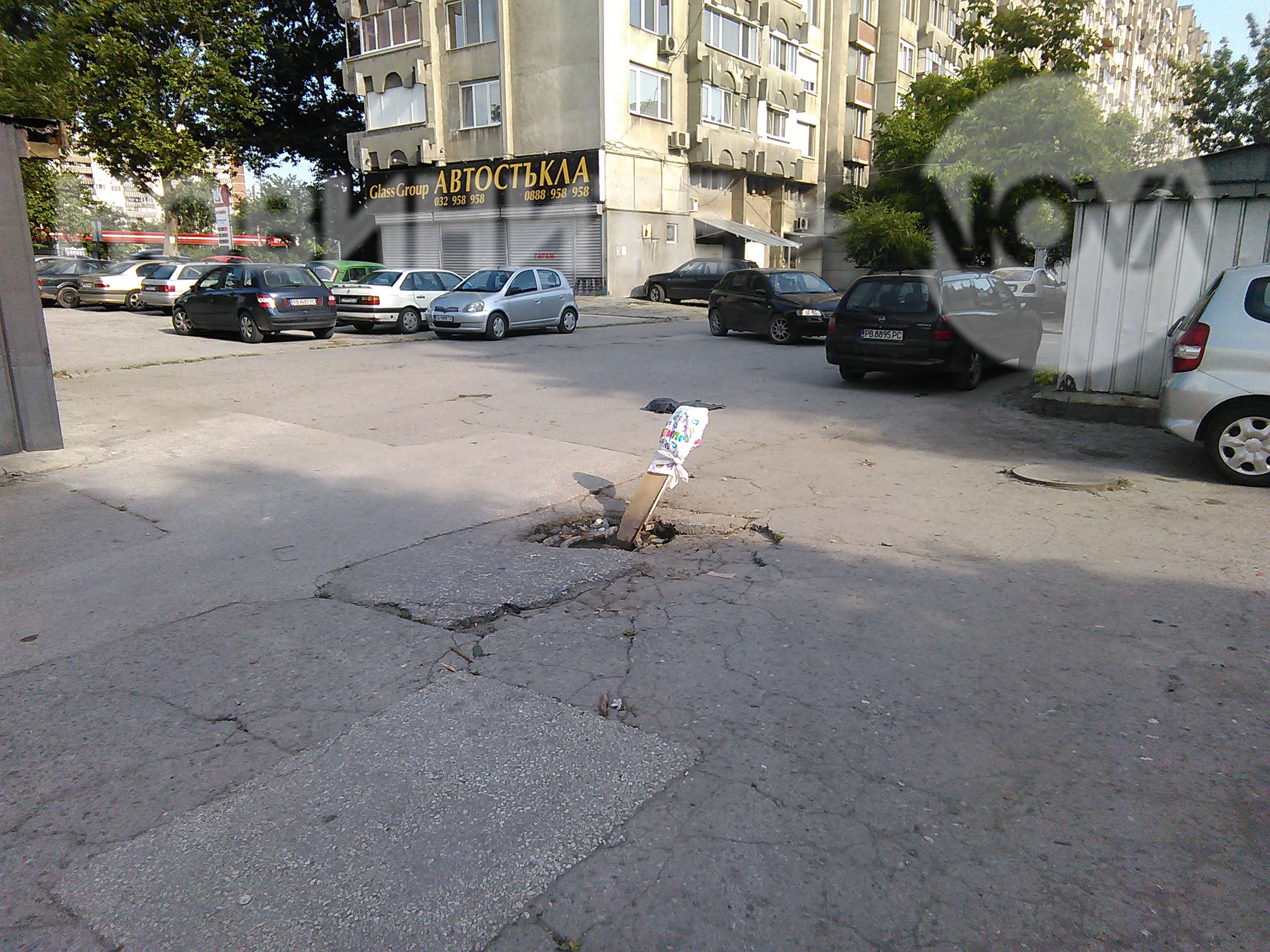 Изпращам ви тези снимки от Пловдив, ул. "Найден Попстоянов" 1. На двете снимки е дъждоприемна шахта, която е запушена от години и водата стои вътре в нея и поради тази причина се разруши. Въпреки нашите обаждания до кметството на район Север, все още няма решение. Това дърво е от доста години и е посредата на улицата ни, оставам го без коментар. На снимката се виждат и дупките по улицата, но това го има навсякъде и не прави силно впечатление.