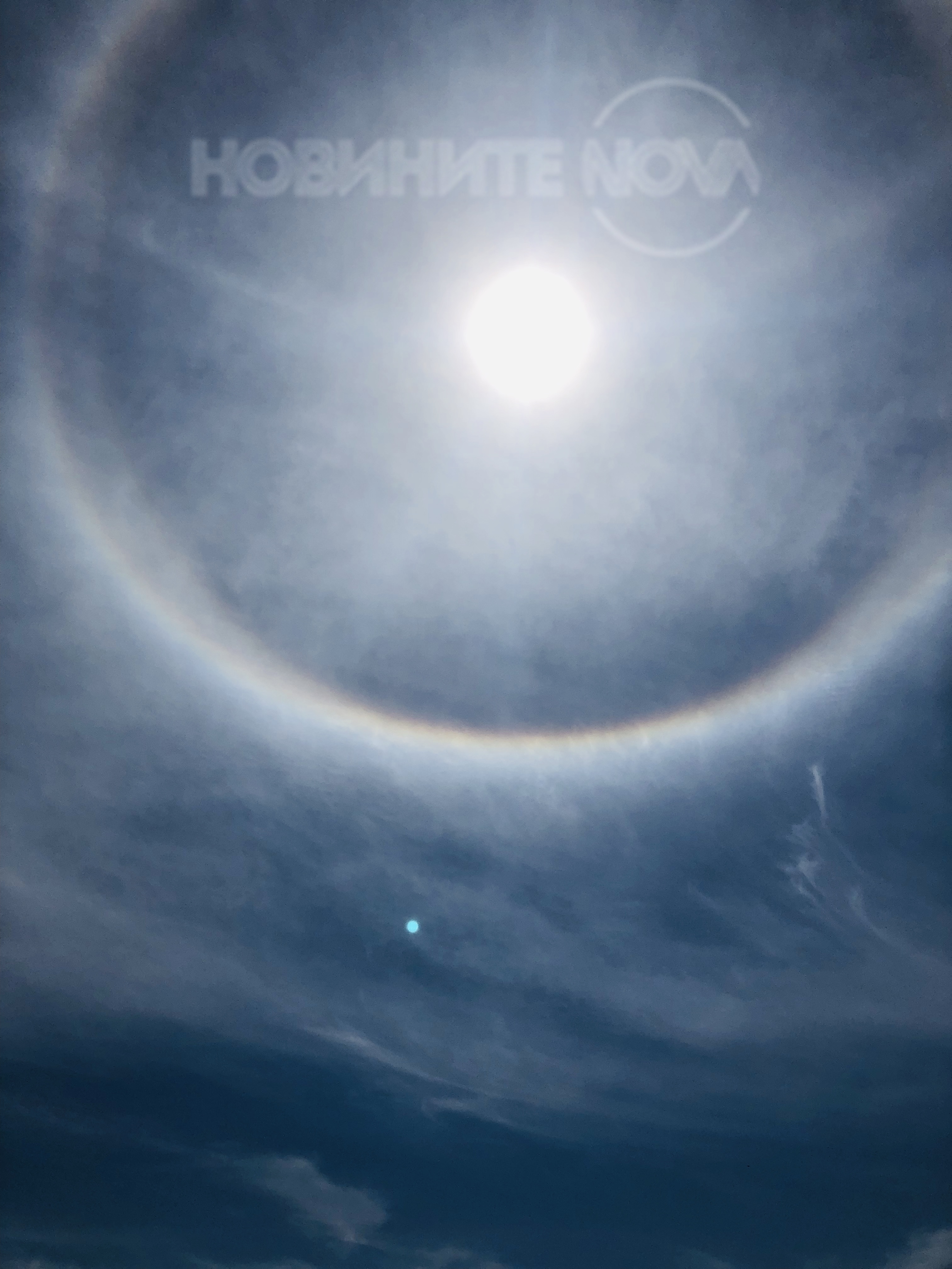 Снимка на Слънцето, снимана от плажната ивица в гр.Балчик, област Добрич. Явлението илюстрира дъга, заобиколила Слънцето.