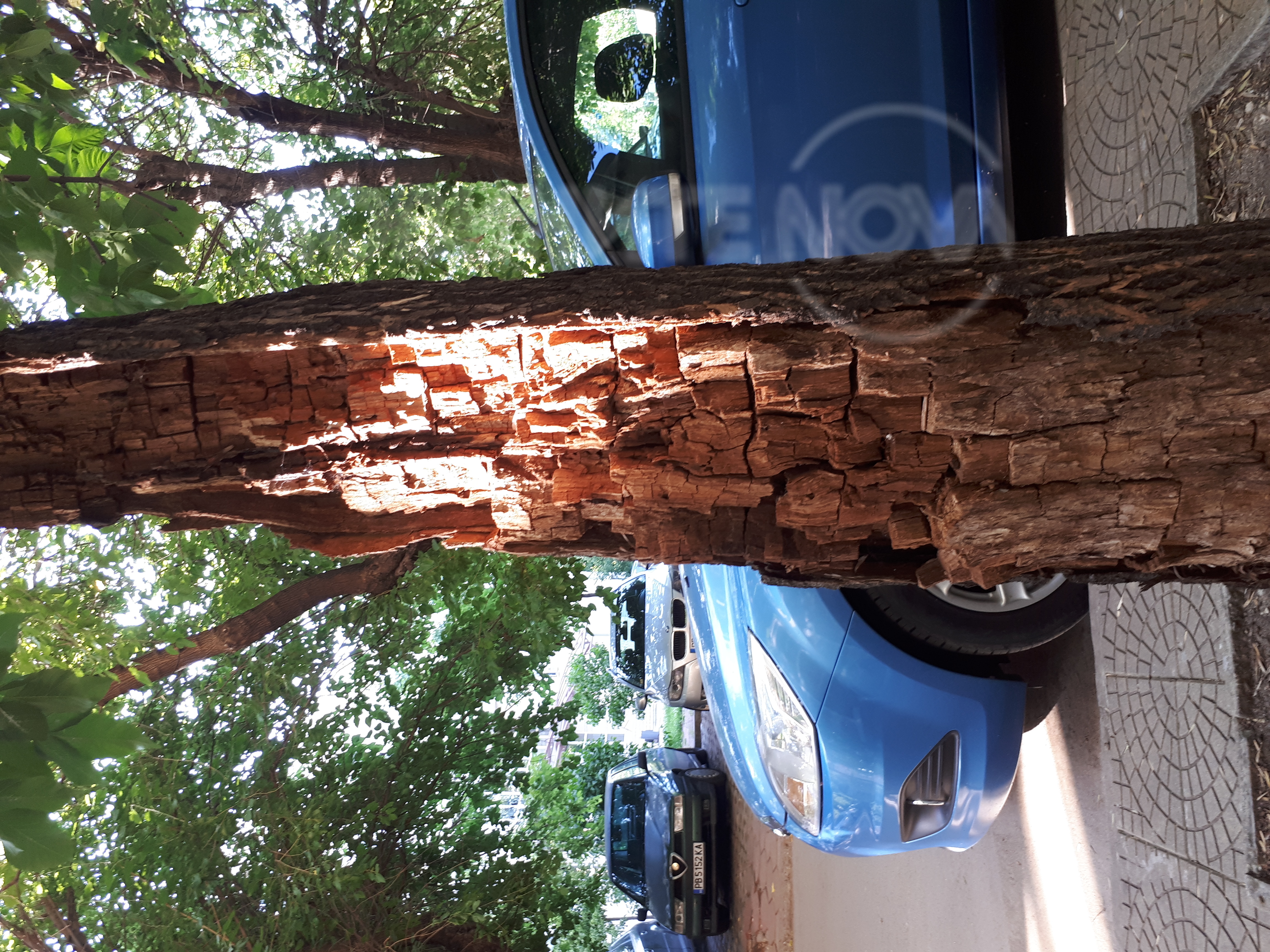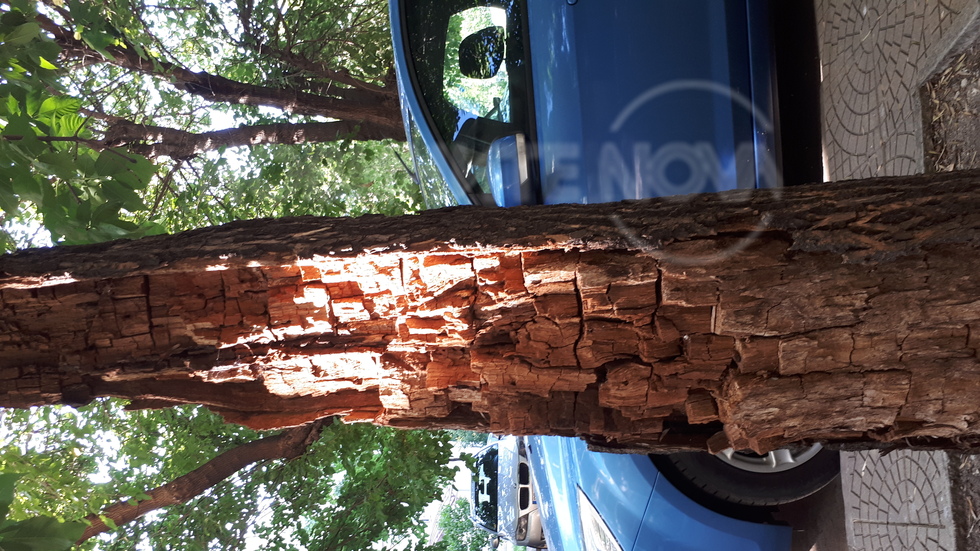 Това дърво се намира в центъра на Пловдив, на ул. "Волга" 47. Това е точно срещу Второ районно управление на МВР. Видях го случайно в петък на обяд и веднага се обадих на съответния телефон . Служителката ме посъветва да позвъня на аналогичен телефонен номер, но към район "Централен", обадих се и там. На имейла на район "Централен" изпратих и писмен сигнал придружен със снимките, които пращам и на вас. Mинах вече неслучайно, а нарочно от там, около 17.30ч. - дървото си е на мястото в същото състояние. При това нестабилно време и очаквани летни бури, а и в ясен и слънчев ден - какво значение има това? Никой не взема никакви мерки. Това е много оживен район на Пловдив и е просто недопустимо. А първите пет снимки са от петък 11.00ч., а другите от понеделник 17.30ч.