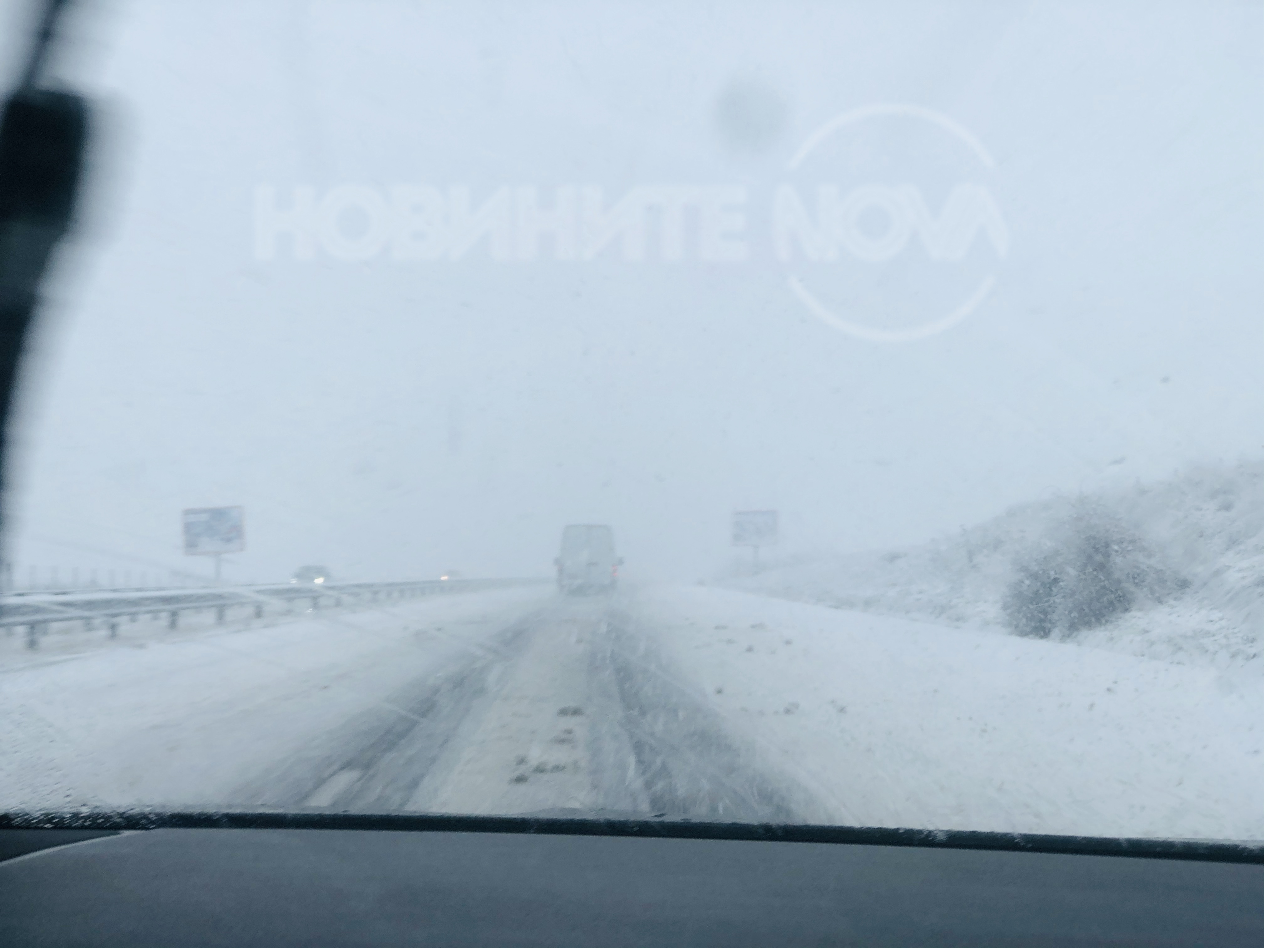 Магистрала "Тракия" от Стара Загора до Пловдив. Караме, а не сме срещнали никаква почистваща техника по пътя и в двете посоки. Има отбили тирове, на места видимоста е намалена и се образуват колони.