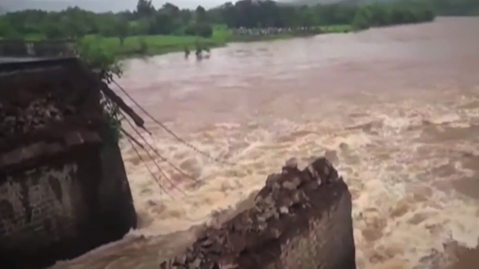 Поне двама души са загинали и над 20 души са в неизвестност след срутване на мост на над 100 години в Индия. По време на трагедията по моста са минавали два автобуса и четири автомобила. В двата автобуса общо е имало 22 души - 18 пътници, двама кондуктори и двама шофьори.