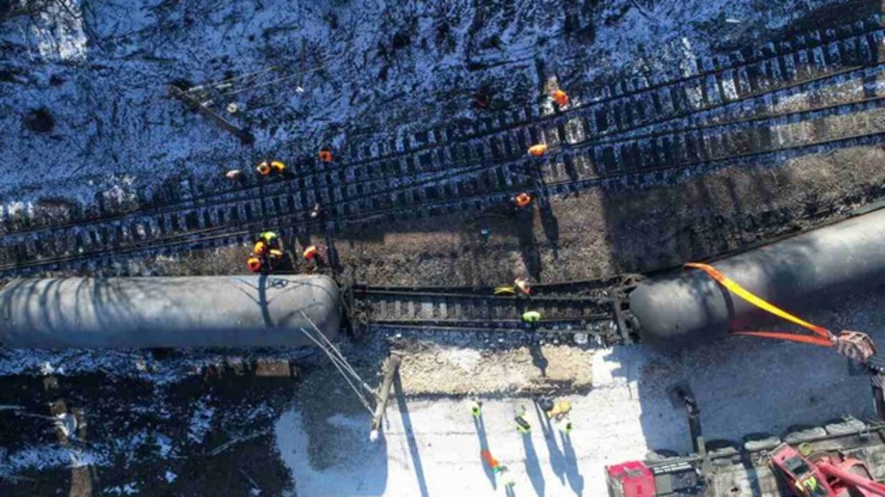Едната е собственост на същата компания, чийто влак дерайлира в Хитрино. В нея бяха разтоварени здравите цистерни от композицията.