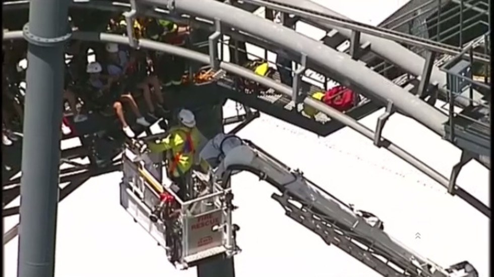 Съоръжението блокирало и спряло заради повреда в една от веригите. Това обявиха от управата на увеселителния парк в Куинсланд.