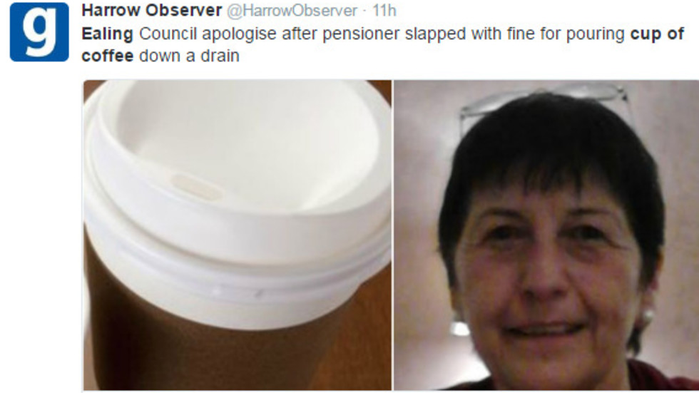 Ealing Council apologise after pensioner slapped with fine for pouring cup of coffee down a drain https://t.co/6PRSCeaWmk