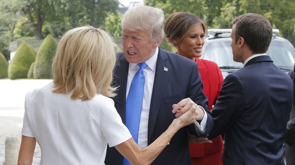 Заедно със съпругата си Мелания той е почетен гост на президента Еманюел Макрон за тържествата по случай Деня на Бастилията.
