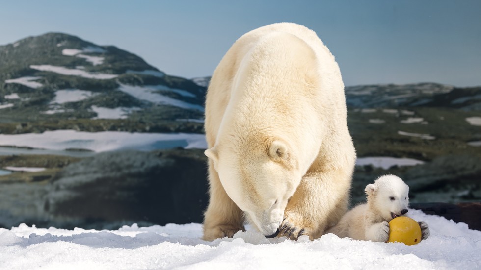 В момента мечето преживява следващия етап от развитието си. То е пуснато в специален кът, който наподобява естествената среда на белите мечки. Там ще се учи да плува и да ловува.