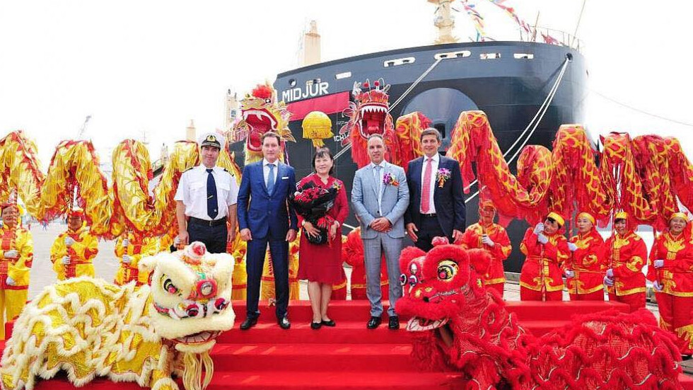 Китайската корабостроителница Jiangsu New Yangzi Shipbuilding вдигна днес флага на втория 45 500-тонен моторен кораб за превоз на насипни товари, поръчан от българската компания „Параходство Български морски флот“ АД („Параходство БМФ“). Ванг Сиаоийнг, зам.-генерален директор в направление „Кредитиране“ на EXIM BANK OF CHINA, даде на новопостроения плавателен съд името „Миджур“ и му пожела успешно плаване.