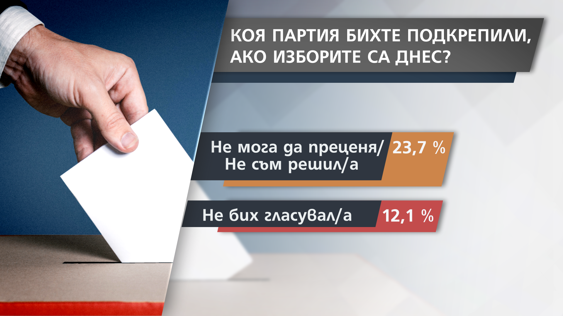 И все пак към този момент 23,7 на сто от хората казват, че не са решили за кого да гласуват, а малко над 12 % споделят, че няма да гласуват.