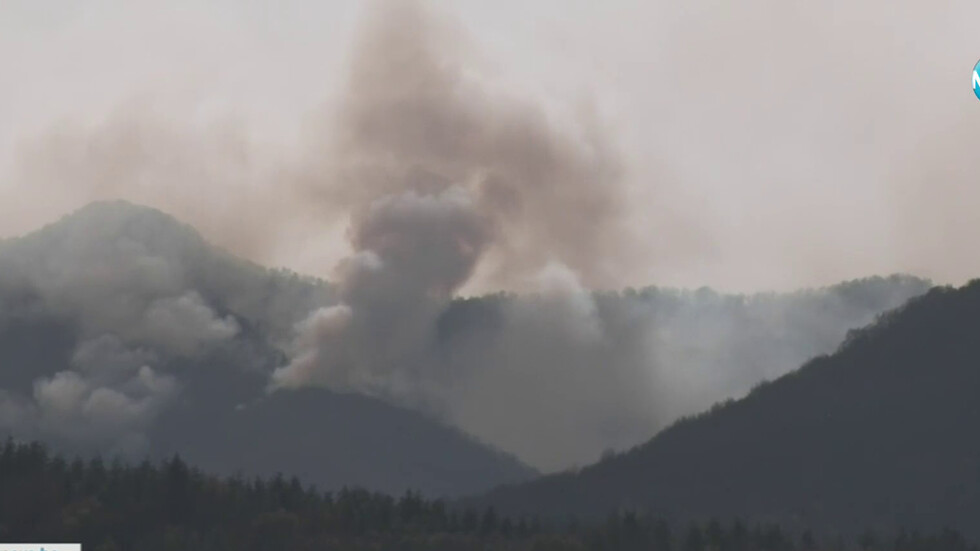 Теренът е труднодостъпен и периодично пламъците навлизат на българска територия. На място работят близо 100 пожарникари, горски служители и доброволци.