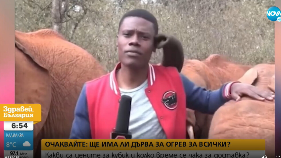 Репортаж на кенийска телевизия показва как малко слонче събра симпатиите на зрителите. От кадрите се вижда как докато репортерът заснема анонса си, слончето Кингали го гали по главата с хобота си и накрая дори го гъделичка по носа.