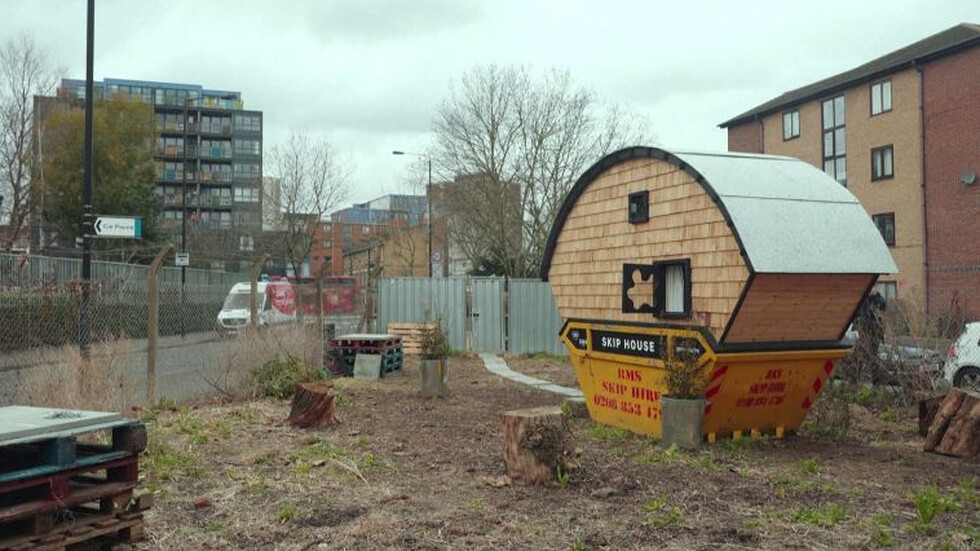 Лондонски творец си построи къща от контейнер за строителни отпадъци и планира да живее в нея в продължение на година. Причината – да привлече внимание към „лудите” пари, които трябва да платиш, за да наемеш стая в британската столица на фона на кризата с непрестанно покачващите се разходи за живот.