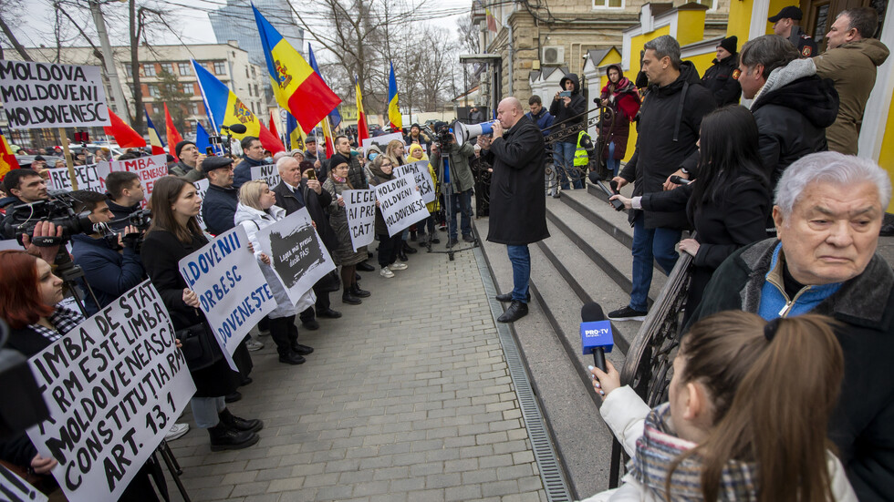 Протест пред Конституционния съд в Кишинев срещу преименуването на езика. Снимка: БГНЕС/ЕПА