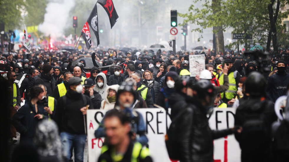 Френските синдикати използват 1 май, Международния ден на труда, за да провокират максимално много хора да излязат на улицата и да се обявят срещу вече гласуваната и подписана от президента Еманюел Макрон пенсионна реформа, предава БТА.