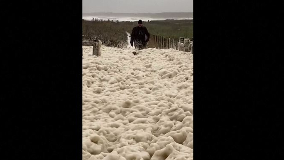 Гъста пяна покри плажа край британското градче Хоуик, разположено в графство Нортъмбърленд. Причина за явлението стана бурята „Бабет”, която удари страната.
