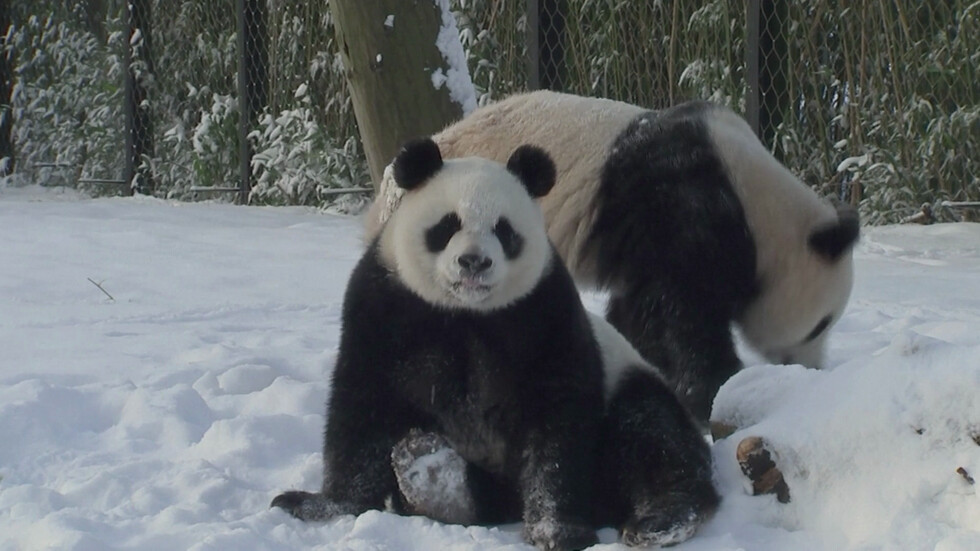 Снегът не е необичайно явление в естественото планинско местообитание на пандите в китайската провинция Съчуан.