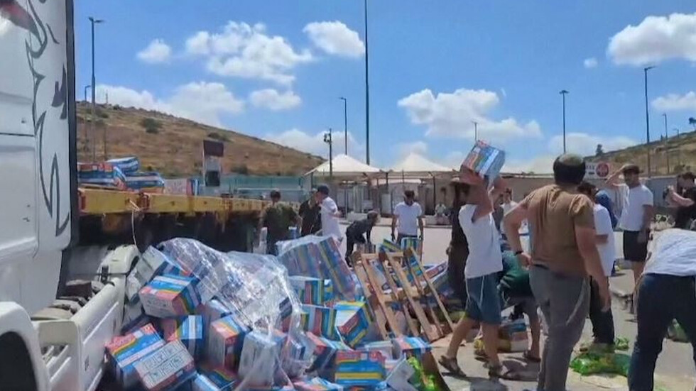 Протестиращи израелци блокираха камиони с помощи за Газа, като разхвърляха пакети с храна върху пътя. Това е поредната от серия подобни случки, станали, след като Израел обеща да позволи безпрепятствено предоставяне на хуманитарна помощ на обсадения анклав.
