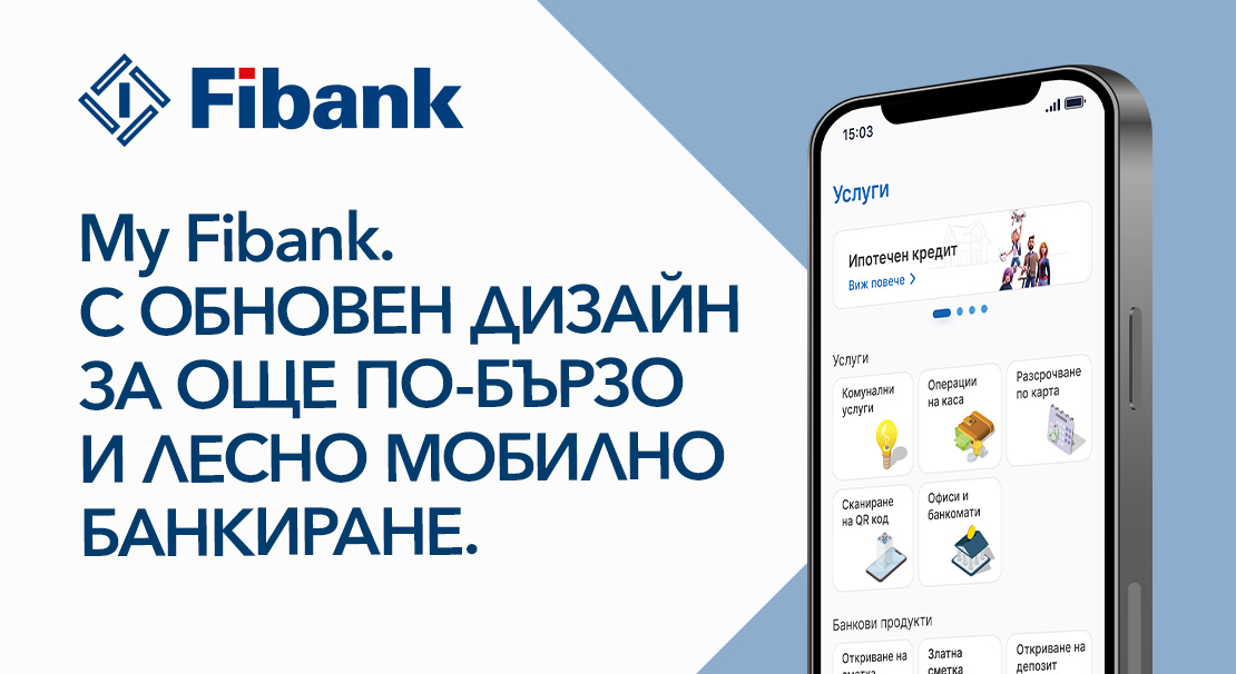 Fibank вече промени изцяло облика на мобилното си приложение, като то беше преобразено с напълно нов дизайн, с много по-достъпен и интуитивен интерфейс, който води стъпка по стъпка потребителите към извършване на дадена операция само с няколко клика.
