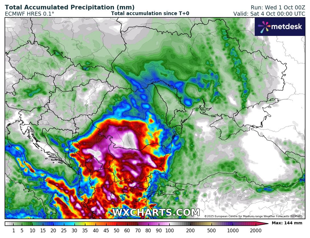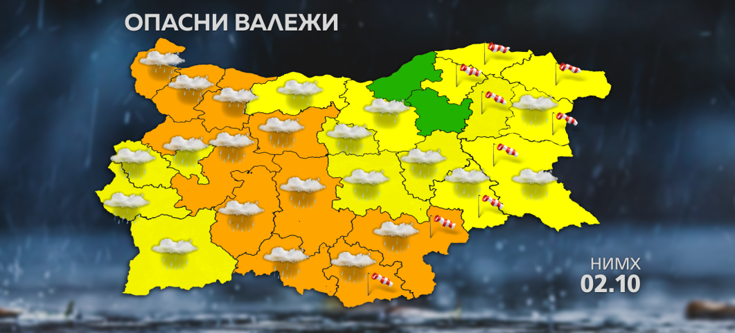 Валежите от дъжд ще започнат още в нощта срещу четвъртък от запад и през деня бързо ще обхванат почти цялата страна. За 48 часа в Северозападна, Централна и на по-малко места в Източна България ще се акумулират между 50 и 100, локално и над 100 литра на квадратен метър. Има риск от разливи по водоемите, наводнения и активиране на свлачища.