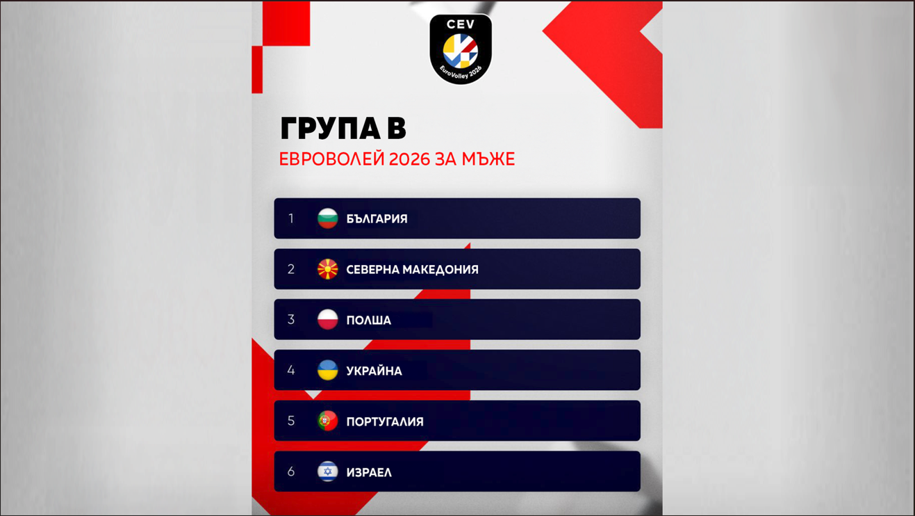 Мъжкият национален отбор по волейбол ще срещне европейския шампион Полша в група "Б" на Евроволей 2026. Останалите съперници на "лъвовете" са Северна Македония, Украйна, Португалия и Израел.