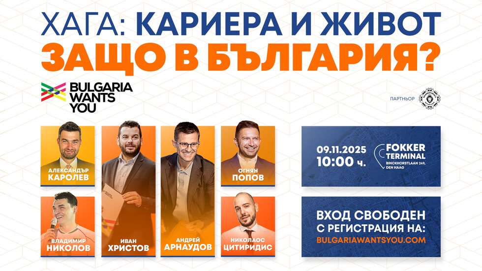 На 9 ноември Bulgaria Wants You ще посрещне българската общност в Нидерландия. Форумът „Кариера и живот: Защо в България?“ ще срещне посетителите си с водещи работодатели от България и представители на институции, които ще отговорят на конкретни въпроси за кариерните и житейските перспективи у дома.
