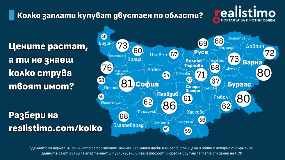 Повечето българи (включително много от Вас, които четете това) не знаят колко струва имотът им точно сега в момента. Всеки знае колко има в сметката си, ако пък инвестира знае и колко има в акции, крипто, злато или други инвестиции. Цената на най-голямото му богатство обаче - имотът - е забулен в тайна или още по-страшно, в заблуда. Интересни факти обаче излязоха около осведомителната кампания на портала за имоти Реалистимо “Колко струва моят имот” и новия калкулатор за цена на имот на Realistimo.com/kolko