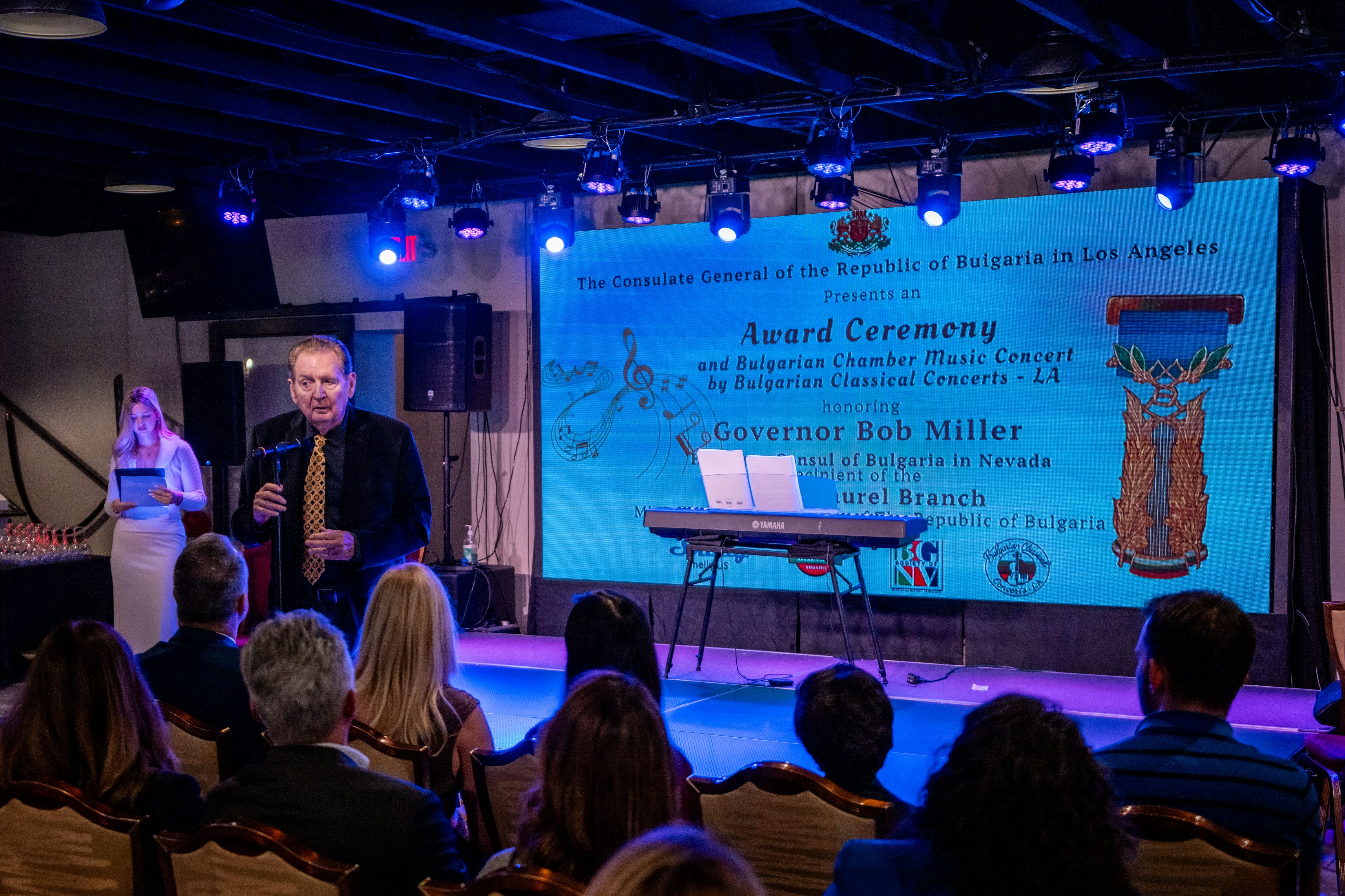 Поздравителни адреси бяха получени, също така, от американския сенатор Катрин Кортес Масто и губернатора на щата Невада, Джо Ломбардо. Боб Милър беше поздравен от сцената и от двама видни представители на българската общност в Лас Вегас – Светлин Тодоров, главен изпълнителен директор на успешната българска високотехнологична компания и Стилиян Митков, президент на Българо-американската асоциация на Невада.