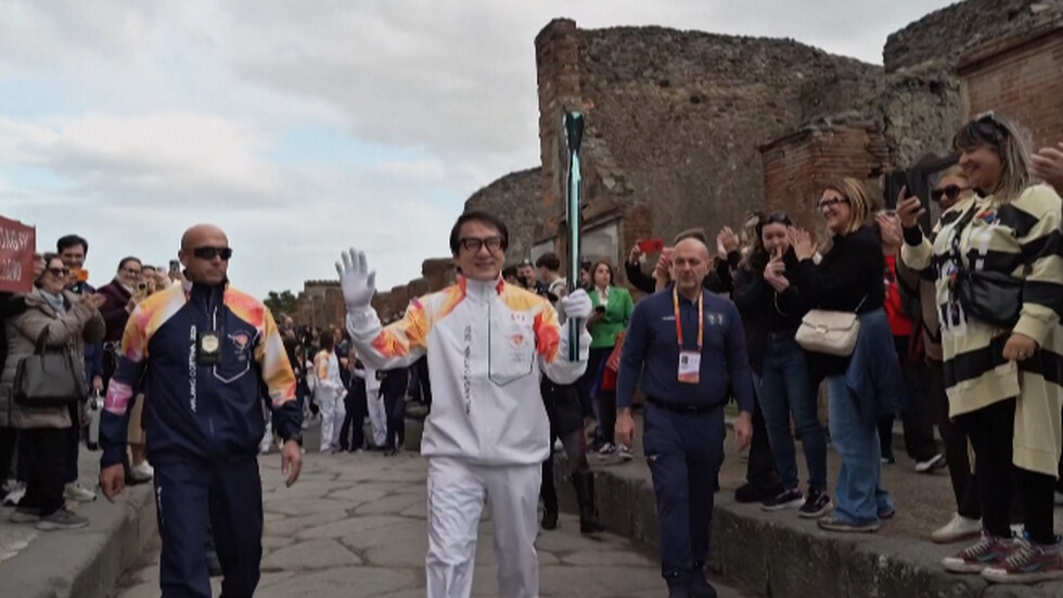 Легендарният актьор Джеки Чан пренесе олимпийския огън през руините на древния Помпей. Китайската филмова звезда беше част от щафетата, която продължи пътя си по крайбрежието на Амалфи.