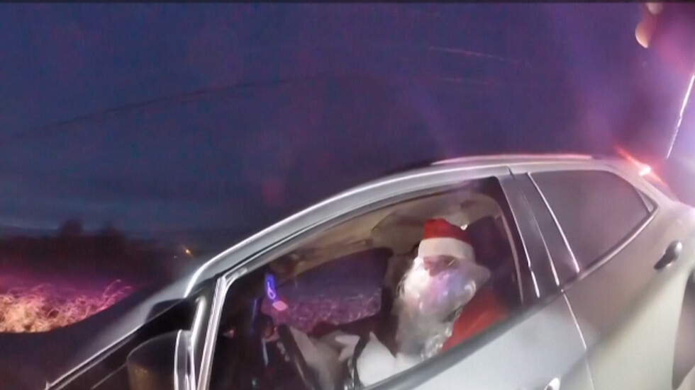 Автомобилът бил спрян за проверка, а полицаят задал на шофьора въпроса: "Покажете си шофьорската книжка!", когато забелязал нещо странно - водачът бил облечен в костюм на Дядо Коледа. Оказало се, че на пътническата седалка до него седи не кой да е, а госпожа Коледа.