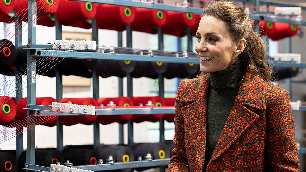 Принцесата на Уелс Кейт Мидълтън изпробва уменията си като шивачка по време на визитата си в градчето Кардиган. Тя посети работилница за първокачествени дънки, притежавана от местно семейство.