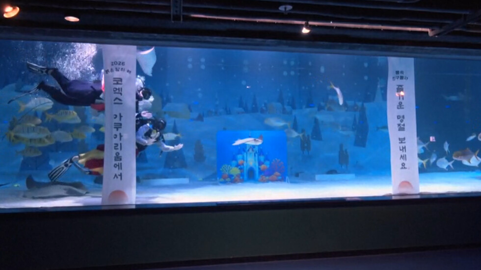Водолази, облечени в традиционни корейски носии „ханбок“, отправиха празнични пожелания за Лунната нова година под вода. Необичайното шоу се състоя в аквариума в Сеул, който представлява воден басейн с обем от 2000 тона.