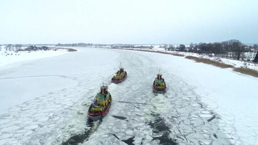 Река Висла в Полша замръзна през последните седмици заради рекордните студове в страната. Заради очакваното затопляне на времето обаче има опасност откъснали се ледени парчета да предизвикат запушване на речното корито. Затова властите изпратиха няколко ледоразбивача, които да помогнат с проходимостта на реката.