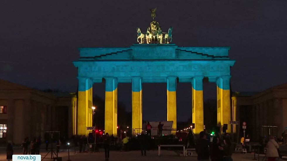 Редица емблематични сгради по света бяха осветени в цветовете на Украйна – синьо и жълто, по повод четвъртата годишнина от началото на войната.