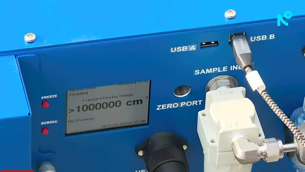 По време на демонстрацията експертите проследяват в реално време резултатите от измерването. Данните показват рязко покачване на броя на частиците – до максималния капацитет на уреда.
