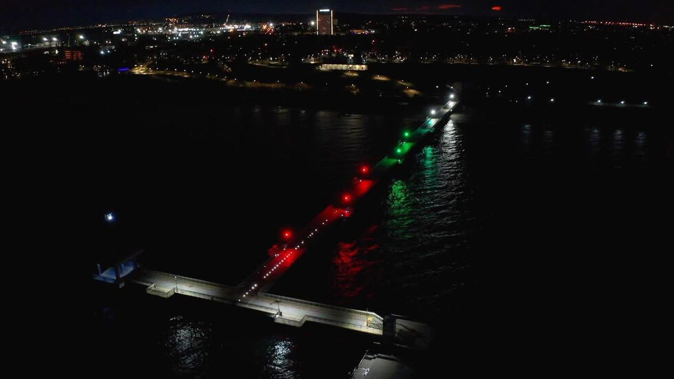 Стотици диодни прожектори огряха моста в бяло, зелено и червено по цялата му дължина, а десетки бургазлии си направиха снимки за спомен.