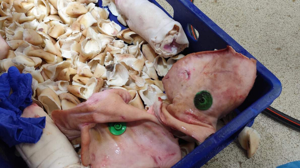 В хладилни камери са намерени над 2,5 тона свински крака, глави и уши с изтекъл срок на годност, както и 940 кг свински субпродукти, телешки опашки, сланина, сало и говежда лой без идентификационна маркировка, с разкъсана или частично липсваща опаковка. Открити са също четири говежди четвъртини с общо тегло над 280 кг без маркировка за произход.