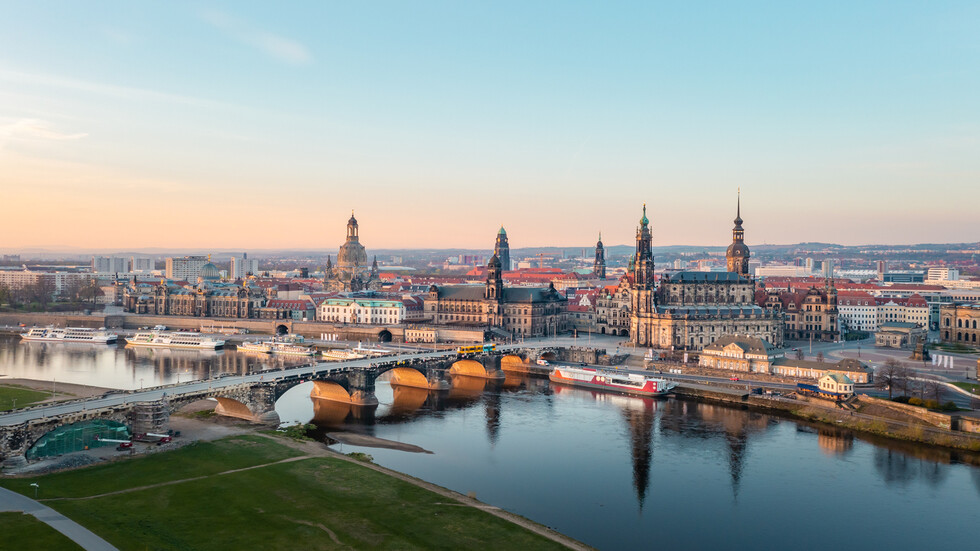Разположен живописно на река Елба, Дрезден е столица на Саксония и е известен със своята впечатляваща архитектура и световноизвестни музеи. Една от най-разпознаваемите му забележителности е бароковата църква „Фрауенкирхе“ в сърцето на стария град. С височина над 91 метра, тя е сред най-високите пясъчникови сгради в света. Почти напълно разрушена по време на Втората световна война, църквата остава в руини десетилетия, преди да бъде възстановена след обединението на Германия с дарения от целия свят. Днес посетителите могат да се изкачат до купола, откъдето се открива панорамна гледка към града – срещу билет и изкачване на 270 стъпала.