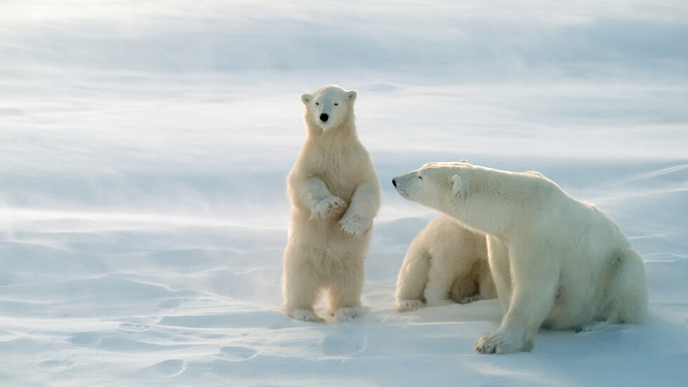 Наблюдаваха рядък случай на полярна мечка, осиновила мече в Канада