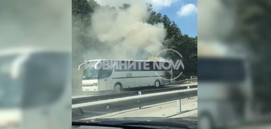 Горящ автобус на път Е79, посока от София за Перник.
